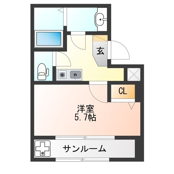 21.3m²/1K [ 6.44坪 ]